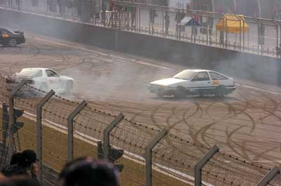 幾萬(wàn)名觀眾觀看了《頭文字D》電影中的飄移比賽,在電影中使用的四輛賽車AE86、EVO、FC、GTR專門(mén)從香港運(yùn)送過(guò)來(lái),四輛賽車在跑道中呼嘯著做各種轉(zhuǎn)彎和飄移的動(dòng)作,隨著一道道青煙的升起,全場(chǎng)立即沸騰起來(lái)。