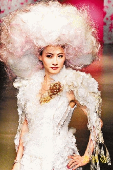 張柏芝以三個不同造型演出,其中以維多利亞宮廷服飾配襯大鬈曲假發最為搶鏡。
