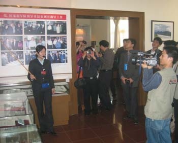 中新網(wǎng)4月18日電(記者林國(guó)瑞邱觀史)4月18日,“魅力山東游——中國(guó)網(wǎng)絡(luò)媒體山東行”采訪團(tuán)來到山東聊城采訪。采訪團(tuán)參觀了孔繁森紀(jì)念館,采訪團(tuán)代表還向孔繁森紀(jì)念館敬獻(xiàn)花籃。