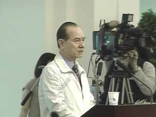 林豐正對(duì)外宣布連戰(zhàn)大陸行程。(臺(tái)灣東森新聞圖)