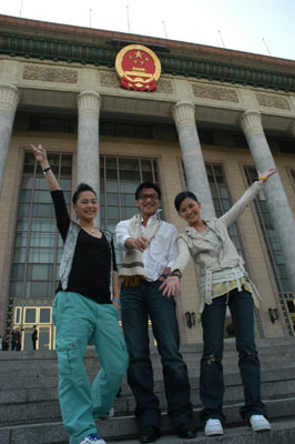 圖:Twins與霆鋒在人民大會堂拍照,興奮得手舞足蹈(大公網圖)