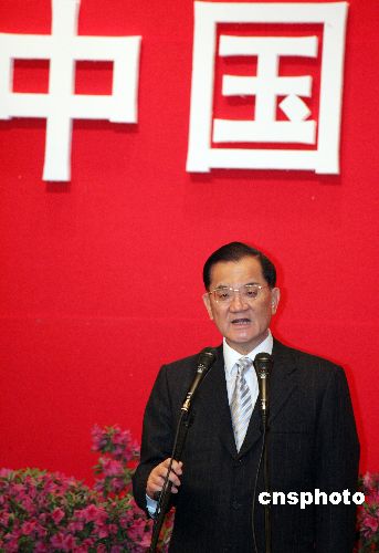 中共江蘇省委書記李源潮四月二十六日晚在南京金陵飯店宴請以中國國民黨主席連戰(zhàn)為首的中國國民黨大陸訪問團(tuán),圖為連戰(zhàn)在晚宴上致辭。作者:毛建軍