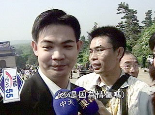 第三次來到南京中山陵,連戰的大公子連勝文,一路走來輕松,但被問到是不是為情消瘦,連勝文把國父都搬出來當作擋箭牌,表示今天來的地方很神圣,不適宜問這種八卦話題。倒是第一次來到南京的弟弟連勝武趕快出面幫哥哥解圍,表示是因為工作繁重才消瘦。
