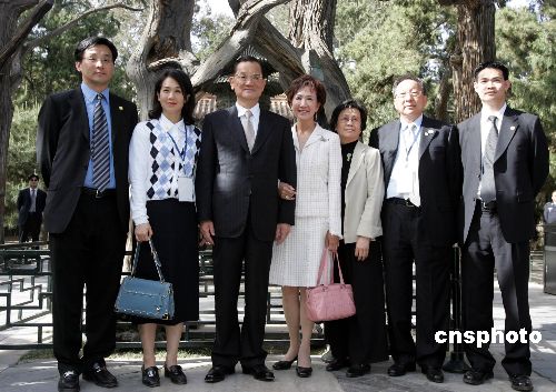 中國(guó)國(guó)民黨主席連戰(zhàn)一行4月28日下午到北京故宮博物院參觀時(shí),與家人在御花園合影。作者:任晨鳴