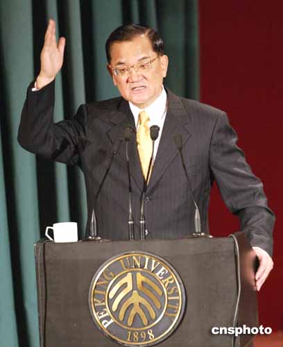 四月二十九日,中國國民黨主席連戰在北京大學發表演講,受到北大師生的熱烈歡迎。作者:廖文靜