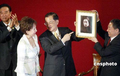 四月二十九日,中國國民黨主席連戰(zhàn)在北京大學發(fā)表演講,并獲贈具有特殊意義的北京大學紀念品。作者:廖文靜