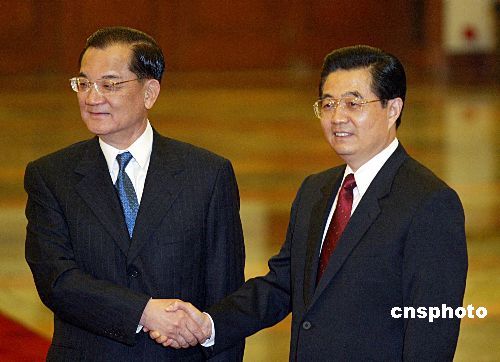 胡總書記、各位女士、先生,今天本人跟內人以及中國國民黨三位副主席,率同很多的朋友,大家一起應胡總書記的邀請能夠來訪問大陸,訪問北京、南京、西安、上海,我要在這里首先表示最由衷的感謝。