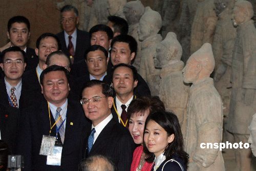 今天下午十七時(shí)十分,連戰(zhàn)一行抵達(dá)秦始皇兵馬俑博物館。秦始皇兵馬俑博物館給予連戰(zhàn)一行只有極少數(shù)貴賓才能享受到的高規(guī)格禮遇:進(jìn)入貴賓通道參觀一號坑;館長吳永琪親自為連戰(zhàn)講解;允許連戰(zhàn)夫婦和三位隨行副主席等貴賓進(jìn)入兵馬俑修復(fù)區(qū);參觀普通游客很難有緣一見的珍貴秦代兵器和青銅器。