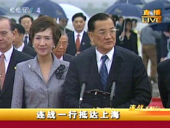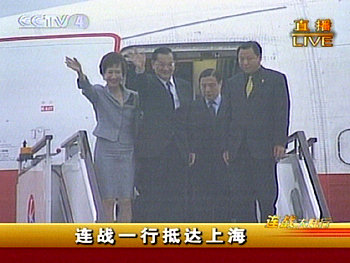 快訊:中國國民黨主席連戰一行抵達上海浦東機場