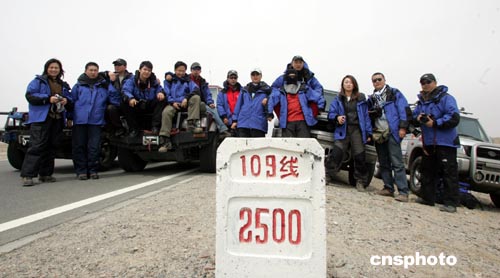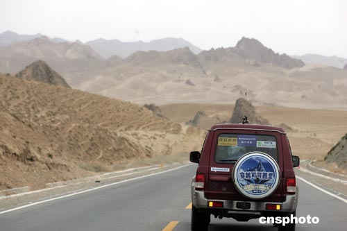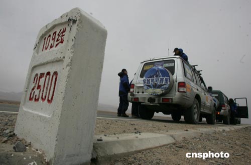 中新網(wǎng)5月3日電 二零零五年五月三日,穿越可可西里聯(lián)想鋒行探險隊車隊抵達(dá)北京——拉薩的109國道2500公里處。