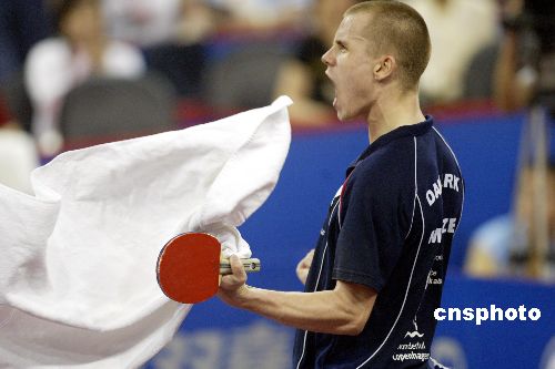 中新社上海五月五日電(劉立濤)在今天世乒賽男子單打四分之一決賽中,丹麥選手梅茲成功上演絕地反擊的好戲,以四比三擊敗中國選手郝帥進入半決賽。