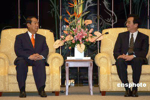 五月七日晚,中共中央政治局委員、上海市委書記陳良宇在上海科技館會見了親民黨主席宋楚瑜率領的親民黨大陸訪問團一行。作者:潘索菲