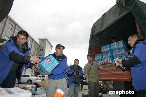 中新網5月8日電 二零零五年五月五日,穿越可可西里聯想鋒行探險隊車隊抵達拉薩,進行休整,為挺進可可西里作最后的準備。下圖為隊員把水、蔬菜、食物等各種宿營裝備裝入八噸重的大卡車。