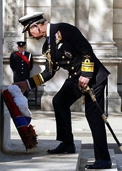 圖文報道:英國王儲查爾斯王子向紀念碑獻花圈