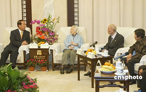 返鄉(xiāng)祭祖的宋楚瑜及家人9日中午在湘潭盤龍山莊與大陸親屬會面。分隔56年的親人一朝相見,不少人都當場流下了熱淚。