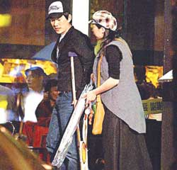 5懷孕近8個月的Tina欲為撐枴杖的小齊撐傘,但遭小齊拒絕。(資料圖片)