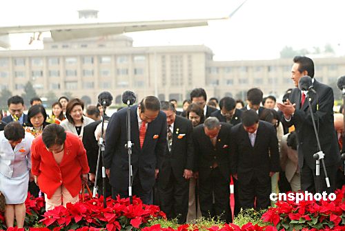 五月十三日上午,親民黨主席宋楚瑜結束了九天八夜的大陸之行離開北京,在發表臨行感言后帶領全體親民黨大陸訪問團團員鞠躬致謝。作者:廖文靜