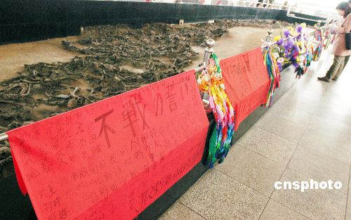 日本侵略者這種滅絕人性的殺戮行徑,令人神共憤,不僅讓中國人民刻骨銘心,也讓世界和平與正義人士義憤填膺。在“平頂山慘案紀(jì)念館”內(nèi),記者看到了許許多多來自日本的千紙鶴懸掛在遇難者遺骸的四周,這是日本“東日本鐵路工會代表團(tuán)”等等那些日本和平正義人士敬獻(xiàn)給這些無辜遇難者冤魂的。“平頂山慘案紀(jì)念館”館長肖景全告訴記者,“平頂山慘案”遺址自上世紀(jì)七十年代開挖以來便不斷有日本游客前來參觀。三十多年來,已有數(shù)十萬人次日本人到撫順參觀“平頂山慘案”遺址紀(jì)念館。每一位目睹“慘案遺址”的參觀者,面對累累白骨,無不為當(dāng)年日軍的殘暴所震驚。(完)