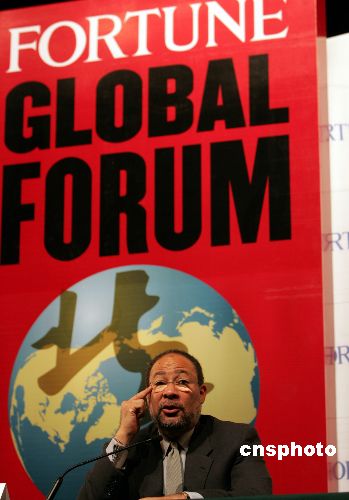 2005北京《財富》全球論壇5月17日在北京釣魚臺國賓館舉行,時代華納公司董事長兼首席執(zhí)行官理查德.帕森思(Richard D.Parsons)在會間的新聞發(fā)布會上解釋為什么《財富》全球論壇多次在中國召開的原因,并展望中國經(jīng)濟(jì)的發(fā)展前景。作者:任晨鳴