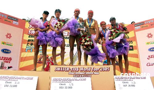 5月21日下午結束的Swatch-FIVB世界沙灘排球巡回賽首戰上海站的比賽中,巴西選手憑借嫻熟的技藝,包攬本屆比賽女子項目的前三名,無愧排球強國的稱號。作者:李佳佳
