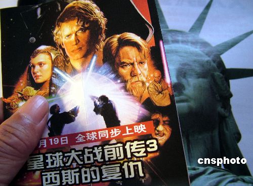 2005年5月23日,一位上海影迷拿著《星球大戰前傳3》的電影票。這是個注定屬于盧卡斯和其星戰帝國的日子。美國當地時間5月19日,《星球大戰前傳3》上映首日票房破5000萬美元,世界電影史上的單日票房紀錄就這樣被刷新,同時令去年6月《蜘蛛俠2》創造的4040萬美元的單片首日票房紀錄作古!缎菓鹎皞3》以數字向世人詮釋了一部好萊塢真正巨片的商業價值。作者:紹常
