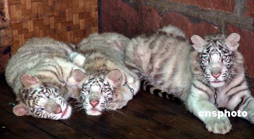 5月30日,重慶野生動物世界工作人員把2004年9月出生的3只小白虎和2005年元月出生的7只小熊獨自關在各自的小屋里,馴化它們的表演能力,以期達到在各種環境下一招制勝的本領。作者:陳仕川