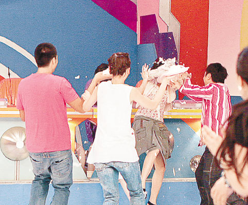 整晚搶盡風頭的丹丹,結果被其它嘉賓以忌廉圍攻。(太陽報圖)