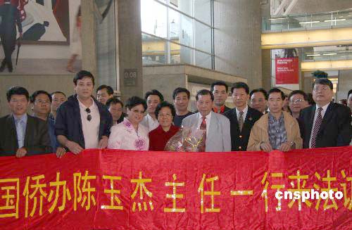 國務(wù)院僑辦主任陳玉杰一行,當(dāng)?shù)貢r間六月八日到達巴黎,受到當(dāng)?shù)厝A僑的熱烈歡迎。作者:鐘誠