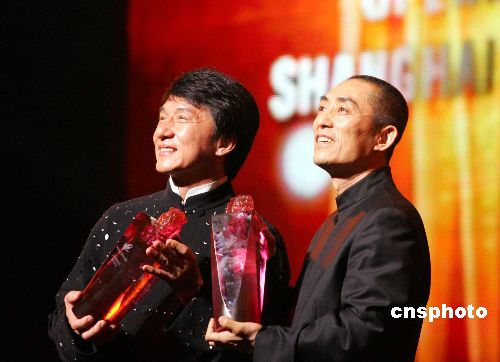 六月十一日晚,在第八屆上海國際電影節開幕式上,張藝謀和成龍獲得“華語電影杰出貢獻獎”。這是上海電影節首次設立的新獎項。作者:潘索菲