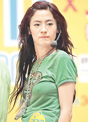 昨天柏芝穿上綠色T恤襯低腰褲作hip hop打扮,跳舞時卻配上“特別效果”,胸前出現“凸點”現象之余,黑色內褲邊也隨著拍子頻頻曝光。柏芝更是語出驚人,在與fans跳舞時,她竟向fans說:“你用下面(下半身)頂住記者就得!笔植晃摹.斔缎侣勁酢窌r,有人假扮狗仔隊偷拍她,柏芝就用屁股把他頂開。