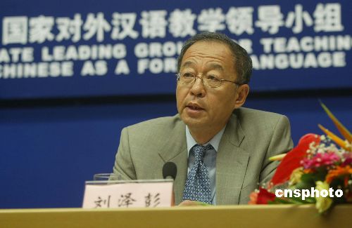 六月十五日,國務院僑辦副主任劉澤彭出席國家對外漢語教學領導小組舉行的新聞分布會。作者:史利