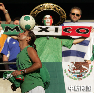 2005年6月22日,德國法蘭克福體育場,在聯合會杯足球賽墨西哥與希臘比賽開始之前的墨西哥球迷為自己球隊加油。