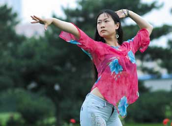程菊花:在某個(gè)周末的“星空舞狀元”里,一個(gè)其貌不揚(yáng)的女孩菊花由衷地說(shuō):“我就是喜歡舞蹈。”在接下來(lái)的一個(gè)選拔日里,她不遠(yuǎn)千里、窮追不舍地趕到另一個(gè)城市,并帶上了數(shù)不清的呼啦圈,鉆進(jìn)去之后,她的舞蹈也演變成了一只彩色蠶繭的蠕動(dòng)。