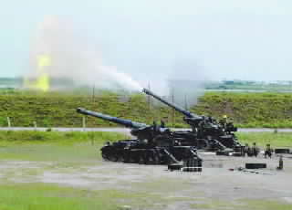 中新網(wǎng)6月24日電 在臺軍陸軍第10軍團(tuán)23日在大甲溪與大安溪口執(zhí)行同時不同區(qū)火炮射擊與陸軍空騎旅、空軍戰(zhàn)斗機(jī)及海軍導(dǎo)彈快艇射擊演練時,被視為目前臺軍最先進(jìn)的火炮——今年首度進(jìn)行實(shí)彈射擊的M110A二式8吋自走炮露面。
