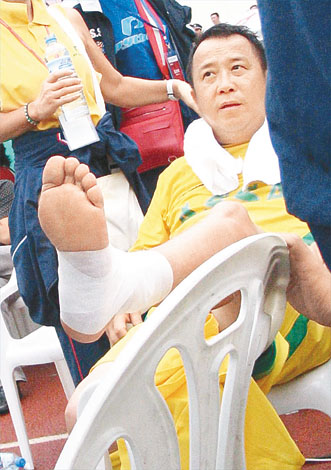 至于張兆輝之受傷經過,據有份協辦此次活動的新城娛樂臺臺長朱明銳表示:“張兆輝守球門時,因為奮勇救波,混亂中被對方隊員踢中膝蓋,立即血流如注,好在入院檢查之后無大礙,已經返回酒店休息。”