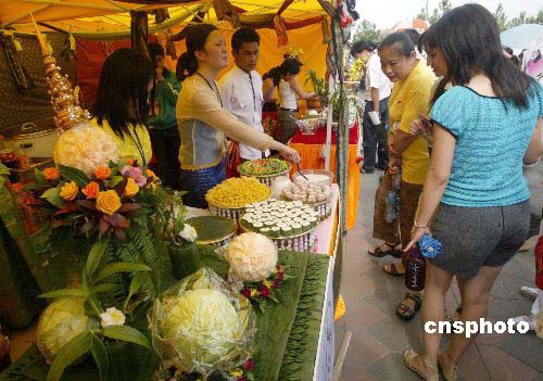 作為慶祝中泰建交三十周年的大型活動--“泰.美好”2005泰國風(fēng)情節(jié),七月一日在北京朝陽公園舉行。眾多泰國的美味佳肴讓北京市民一飽口福。作者:任海霞