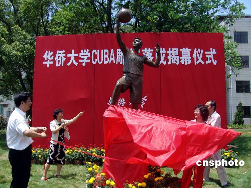 七月二日上午,由華僑大學香港校友會捐贈給母校的CUBA標志性雕塑揭幕儀式在該校的春華園內舉行。據(jù)雕塑的設計者——華僑大學藝術系孫德明老師介紹,該雕塑由華僑大學香港校友會捐資十三點五萬元,歷時一個多月建造的。雕塑高三點四米,以華大學生為原型,設計成具像、動態(tài)的單手投籃的動作,體現(xiàn)了當代大學生積極向上、拼搏的精神風貌。作者:石勇