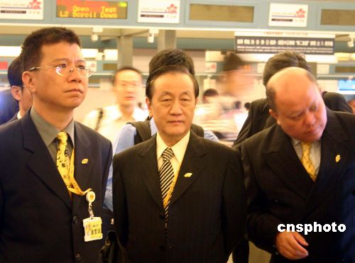 七月六日上午,新黨主席郁慕明(右二)與該黨訪問團成員在臺北桃園機場等候辦理登機手續,準備赴大陸開展“民族之旅”。作者:劉舒凌