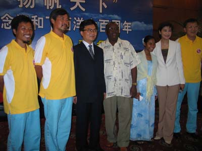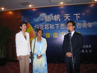 去年8月8日,由鳳凰衛視的四位隊員駕駛的鳳凰號單桅帆船啟程,沿著鄭和寶船的路線去探尋鄭和的足跡。他們于今年3月16日抵達鄭和船隊的終點—肯尼亞,并在當地的探訪中,發現了鄭和船隊水手的后裔、18歲的烏瓦瑪卡•沙里夫,并對她的家庭進行了追訪和報道。