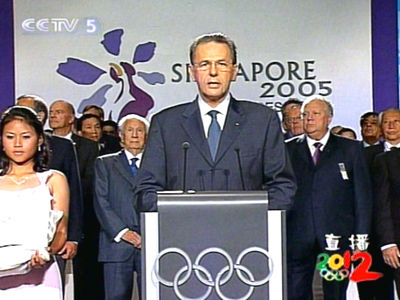 主辦城市選舉的懸念留到了最后一輪,由倫敦“決斗”同樣強大的巴黎。在這輪的投票選舉中,雙方沒有讓國際奧委會主席羅格難堪的戰成平手,而是高下立分。在經過一段讓人幾乎窒息的等待之后,一位華裔新加坡女孩把放有結果的信交給了羅格。羅格在感謝了東道主新加坡民眾、此前提出申請的國家和五個候選國家后,向世人大聲宣布:國際奧委會決定,把第30屆奧運會的主辦權交給倫敦!