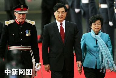胡錦濤主席夫人劉永清以及國務委員唐家璇等陪同人員同機抵達。英國女王代表和外交部高級官員及中國駐英國大使查培新等到機場迎接。