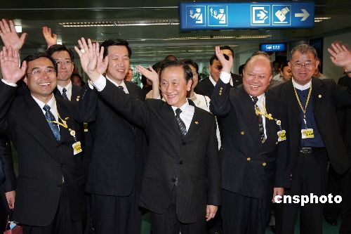 臺(tái)灣新黨主席郁慕明率領(lǐng)的新黨“民族之旅”訪問團(tuán)七月七日下午抵達(dá)南京,在機(jī)場(chǎng)受到熱烈歡迎。作者:毛建軍