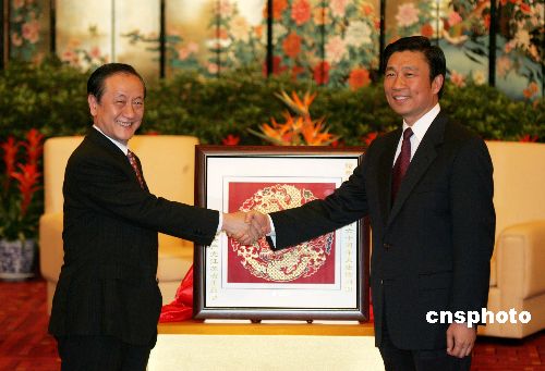 李源潮送給訪問團(tuán)一幅由到南京參加夏令營的臺灣學(xué)生畫的油畫,畫面上有長城,也有阿里山。他說,五十六年來,雖然兩岸選擇了不同的發(fā)展道路,有著不同的社會制度和生活方式,但兩岸血脈相連、文化同源的事實(shí)沒有改變,也不會改變。他希望江蘇與臺灣有更多的交流合作,希望下一代能更多的交流、了解,結(jié)下更多的友誼。李源潮說:“兩岸總有讓孩子們的夢圓的那一天。”
