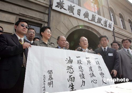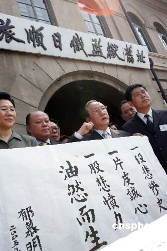 新黨主席郁慕明率領的臺灣新黨“民族之旅”訪問團七月九日在大連參觀旅順日俄監獄舊址,并題字“一段悲慘史,一片虔誠心,一股悲憤力,油然而生”。作者:毛建軍