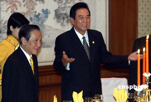 七月十二日晚,中共中央臺灣事務辦公室主任陳云林在北京宴請新黨主席郁慕明率領的新黨“民族之旅”訪問團。作者:廖文靜