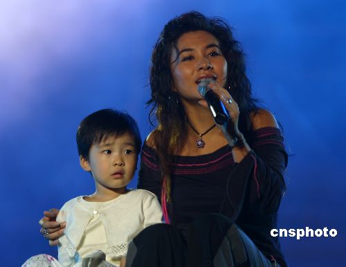 順子(右)擁著一位重慶小女孩深情演繹《回家》。(資料圖片)