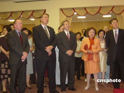 為紀念中國人民抗日戰爭勝利暨世界反法西斯戰爭勝利六十周年,中國駐美大使周文重和夫人七月二十一晚在中國駐美大使館舉行招待會。出席招待會的有美國參議院臨時議長史蒂文斯先生,美國國務院副國務卿多布里揚斯基先生,美國國會眾議員伊斯突克先生,國會眾議員科克先生,以及陳香梅女士,當年幫助中國人民抗戰的美國空軍“飛虎隊”成員代表,華府華人華僑代表三百多人。作者:湯偉