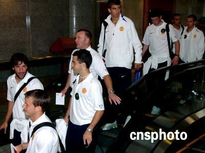 英超豪門曼聯隊昨日抵達北京,開始他們的中國之行。在未來的幾天中,他們將與中國的球迷以及媒體見面,并將與北京現代隊進行一場友誼賽。圖為曼聯球星抵達北京,興致勃勃。