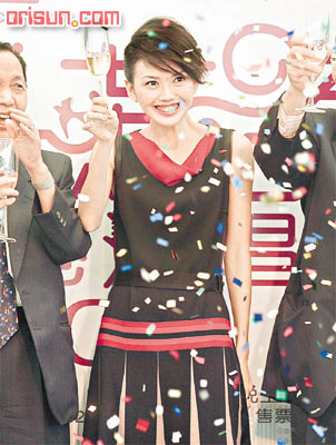 孫燕姿即場舉起香檳杯,預祝個唱賣飛賣個滿堂紅。(太陽報圖)