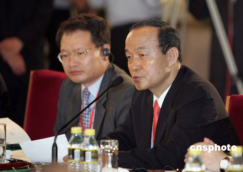 韓國代表團團長、韓國外交通商部次官補宋旻淳七月二十六日在北京釣魚臺國賓館芳菲苑舉行的朝核問題六方會談上發表致辭。作者:毛建軍